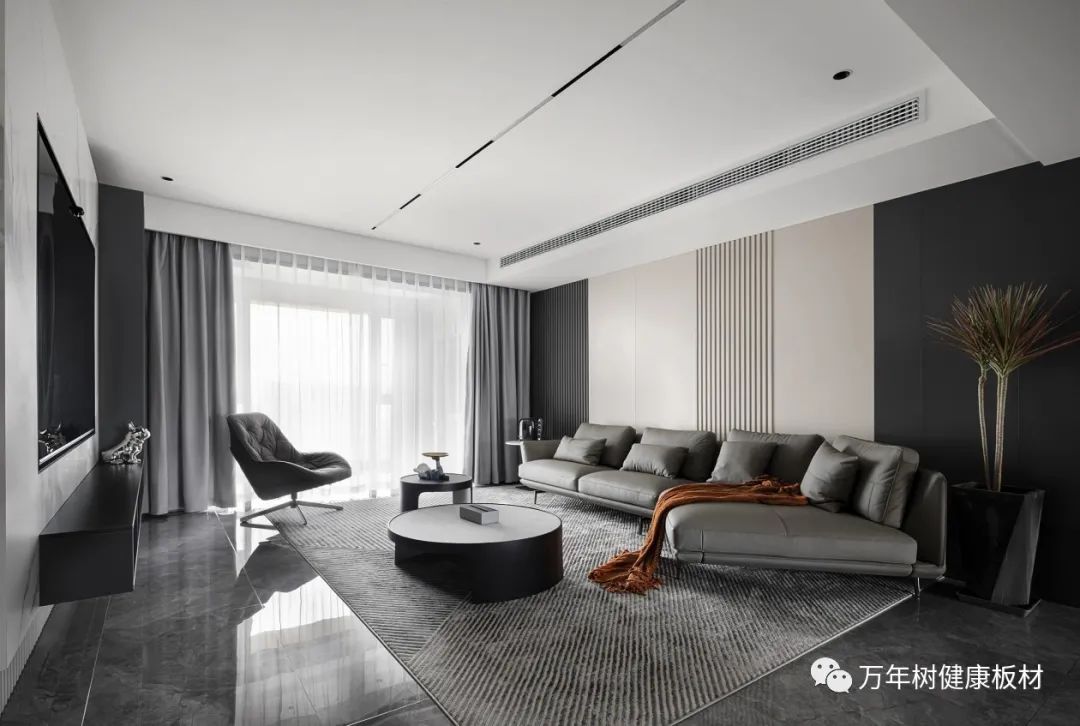 延续了客厅黑白灰的理性