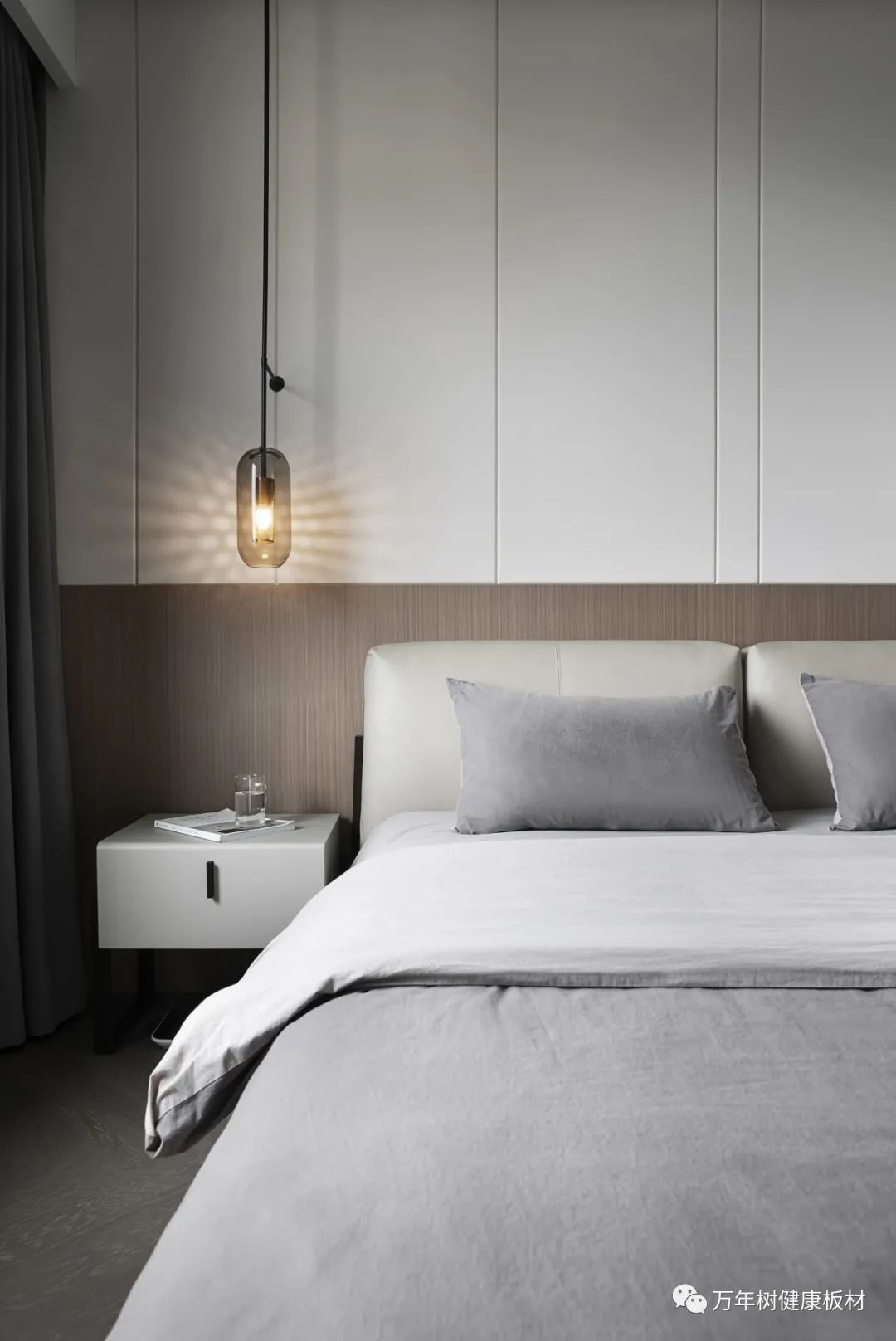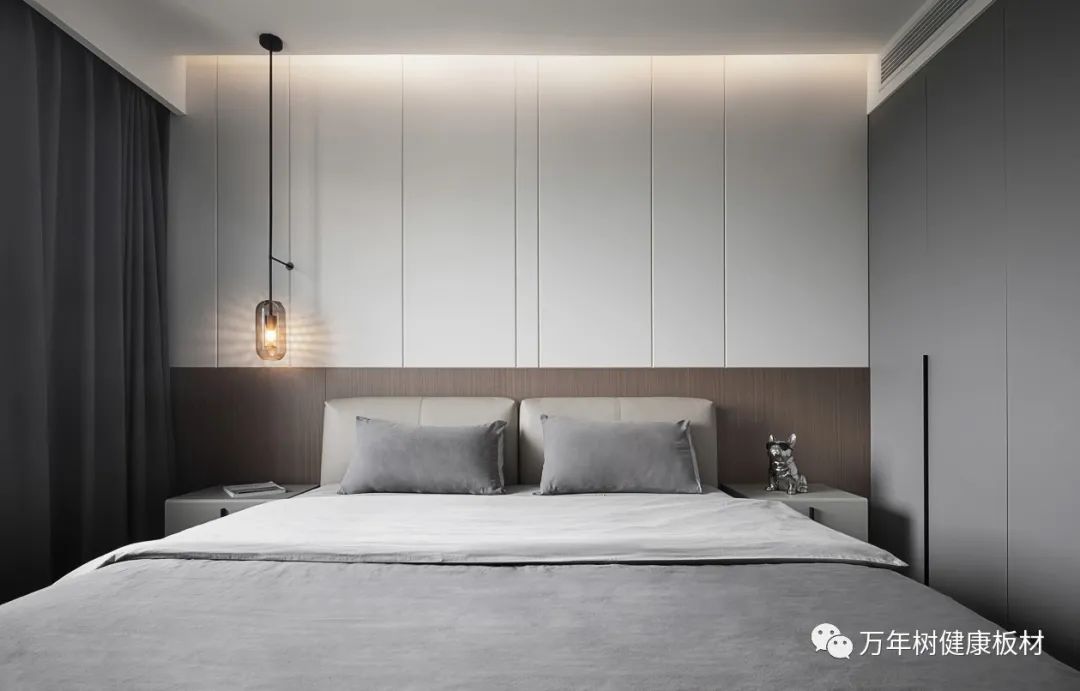 稍加原木床屏和暖光灯饰