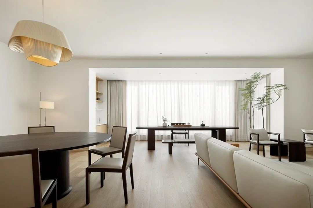 客厅、餐厅与茶室空间被融为一体