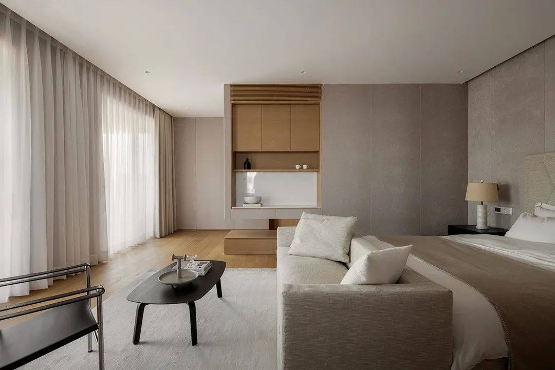 主卧除就寝的基本功能之外 增设休闲的区域,功能完备 空间是承载着居住者的生活习惯 没有定式而是迎合居住者喜好的 强调着人与空间更合适的相处方式。