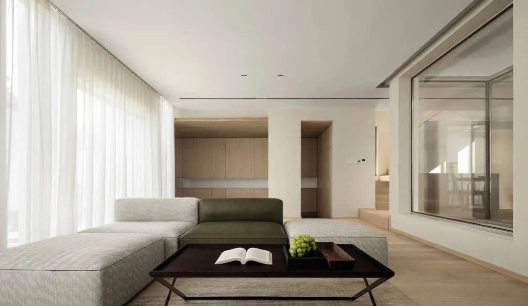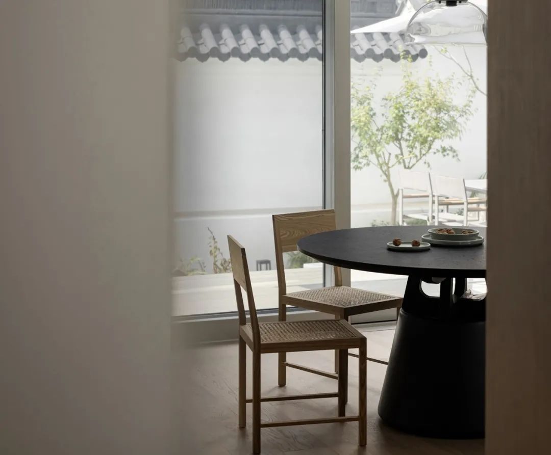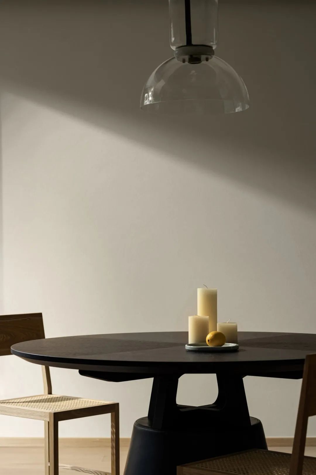 化一抹奶油色,传来暖融温度。引入室外景致,让居于室内的人放空思绪围坐在一起,品味佳肴,增进情感,不知不觉中被光影的诗意打动。