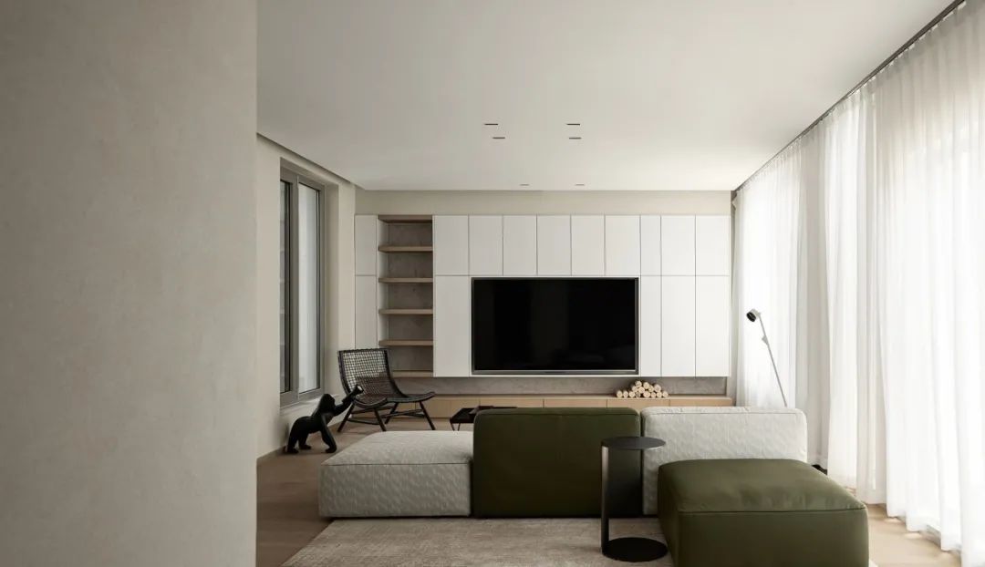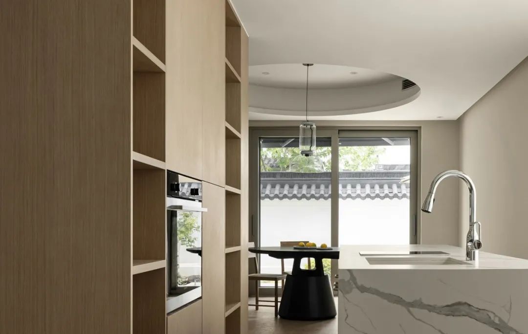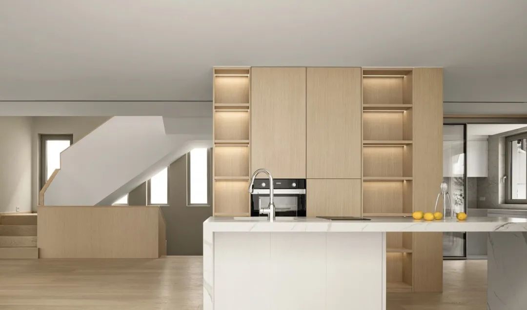 运用统一色调隐藏多重收纳空间,保持了视觉整洁与使用便利的统一性,随性自由的纹理变化,描摹出时光里的人间烟火。