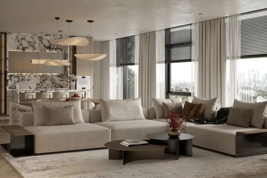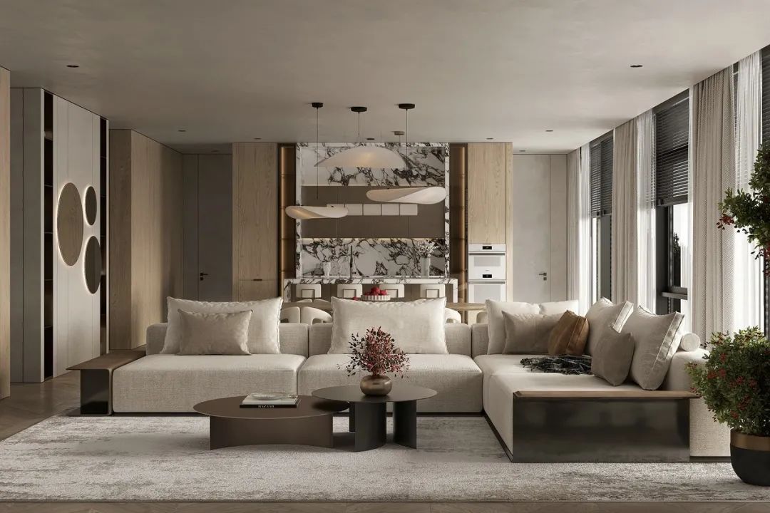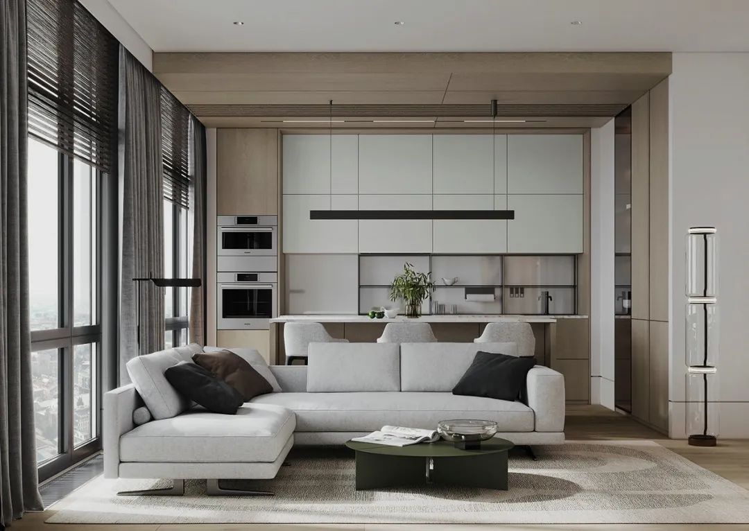 开放式布局能让空间更为宽敞通透,视觉延伸感更强,更显大,即便是小户型也能有豪宅的既视感,既时尚又能增加家人之间的互动交流。更重要的是开放式空间不仅让人产生一种空间扩容的感觉,还会带来意想不到的舒适与愉悦。