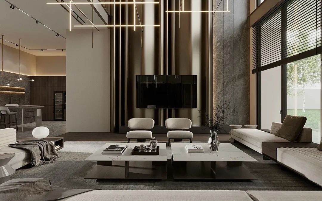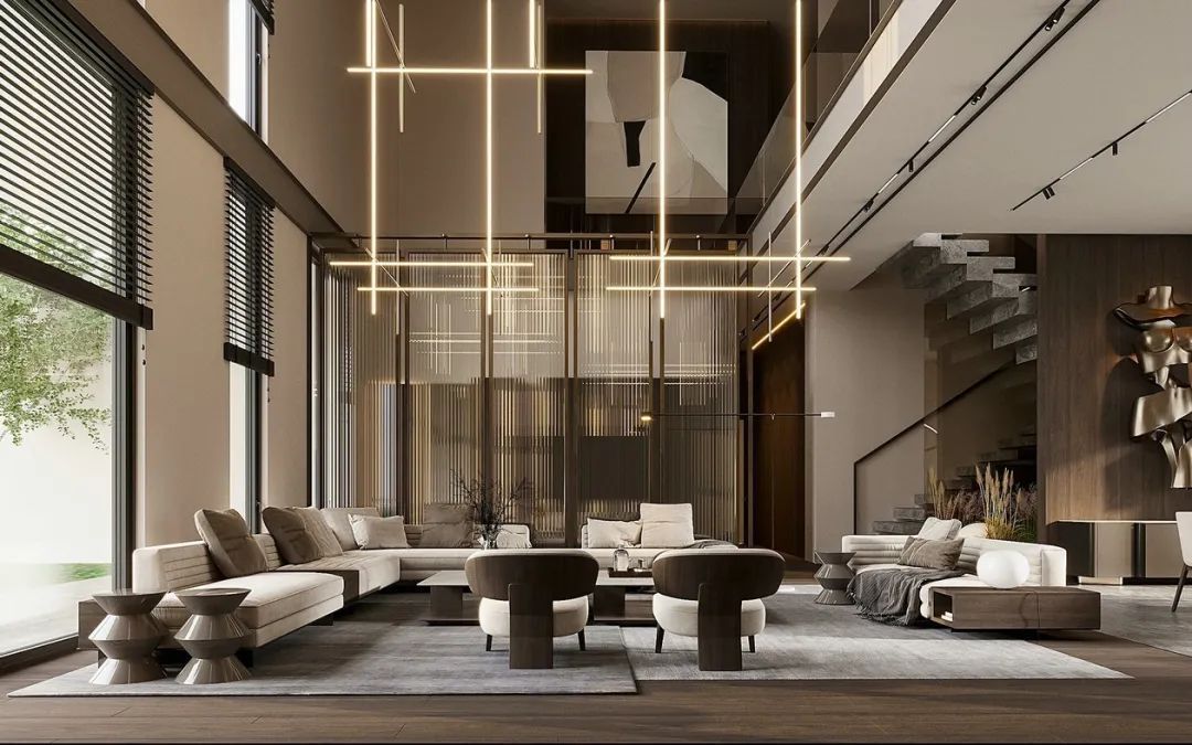 ①大客厅: 注意空间合理分割,一般可以分为“硬性分区”和“软性分区”两种。硬性指通过隔断设计,每个功能区空间相对封闭,将会客、视听、休闲学习从大空间中独立出来,这样的设计布局会减少客厅的使用面积,看需求的程度。软性划分指通过材料之间、家具之间、灯光之间等暗示来划分大空间功能区。