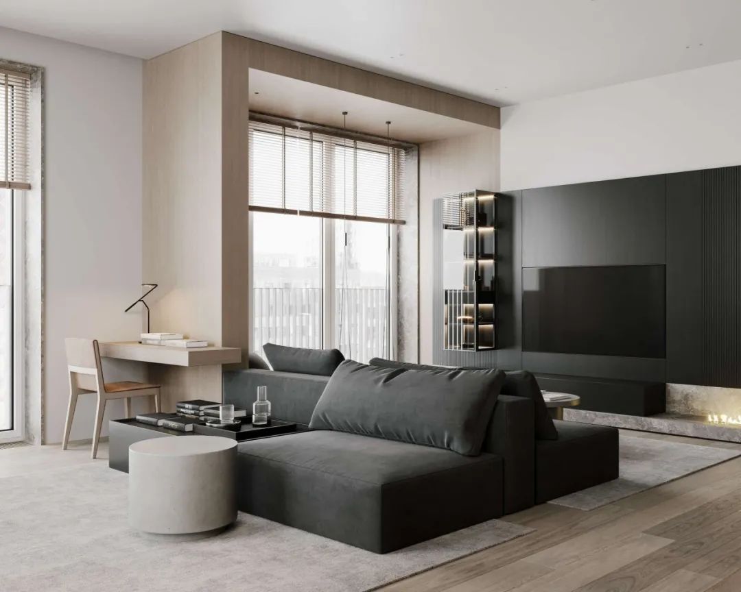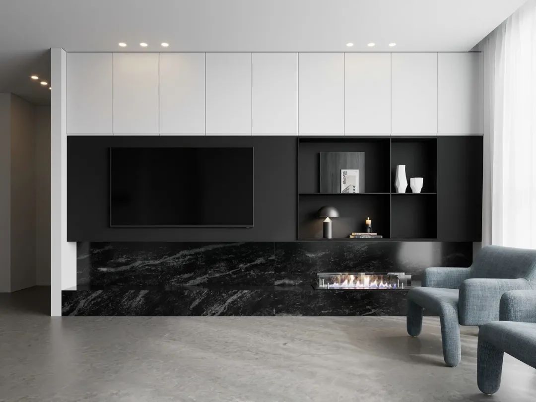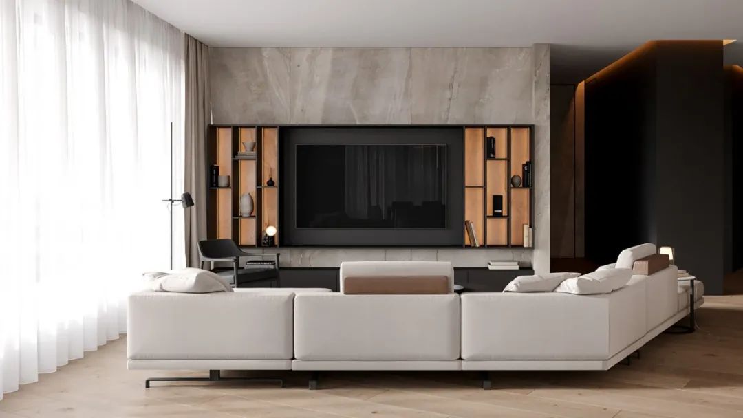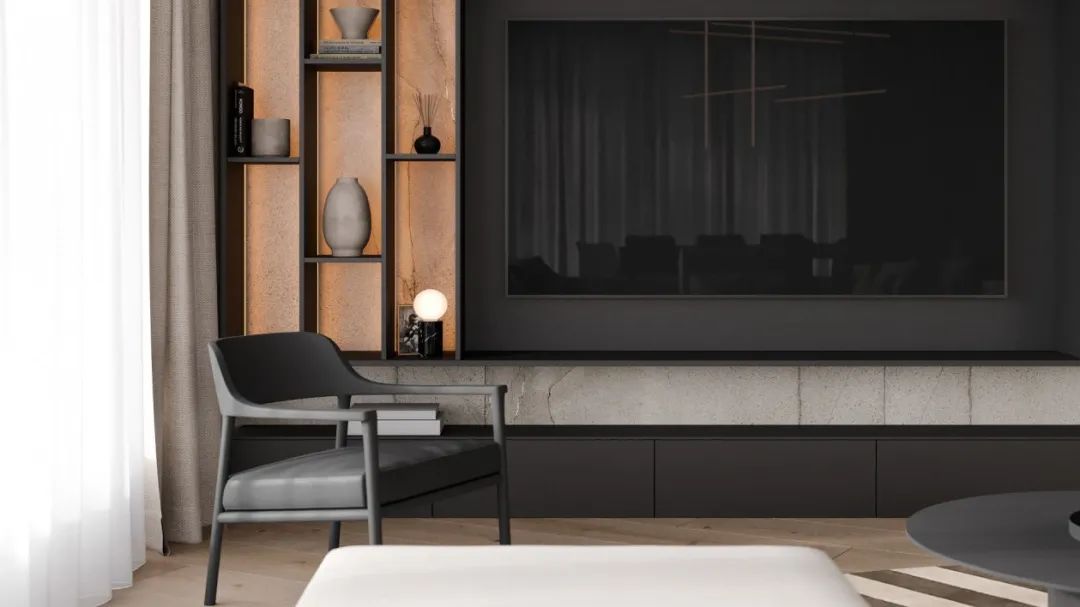 ②视听区:电视与音乐已经成为许多人生活中很重要的一部分。现代化电视、投影和音响系统的颜值也越来越高,即能很好融入家装环境,又能大大提高生活情调。