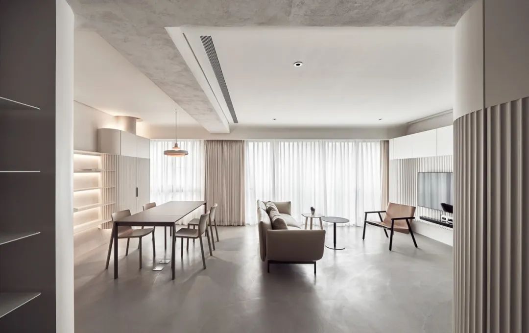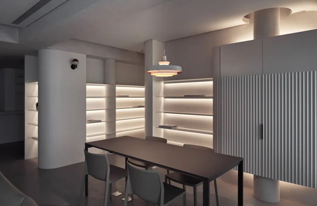 空间的本质其实就是点线面的结合,点的运动可以成为线,而线的运动又会化为面。线条是最原始的装饰元素,也是空间中常用的设计语言,让空间实现流通与交互。