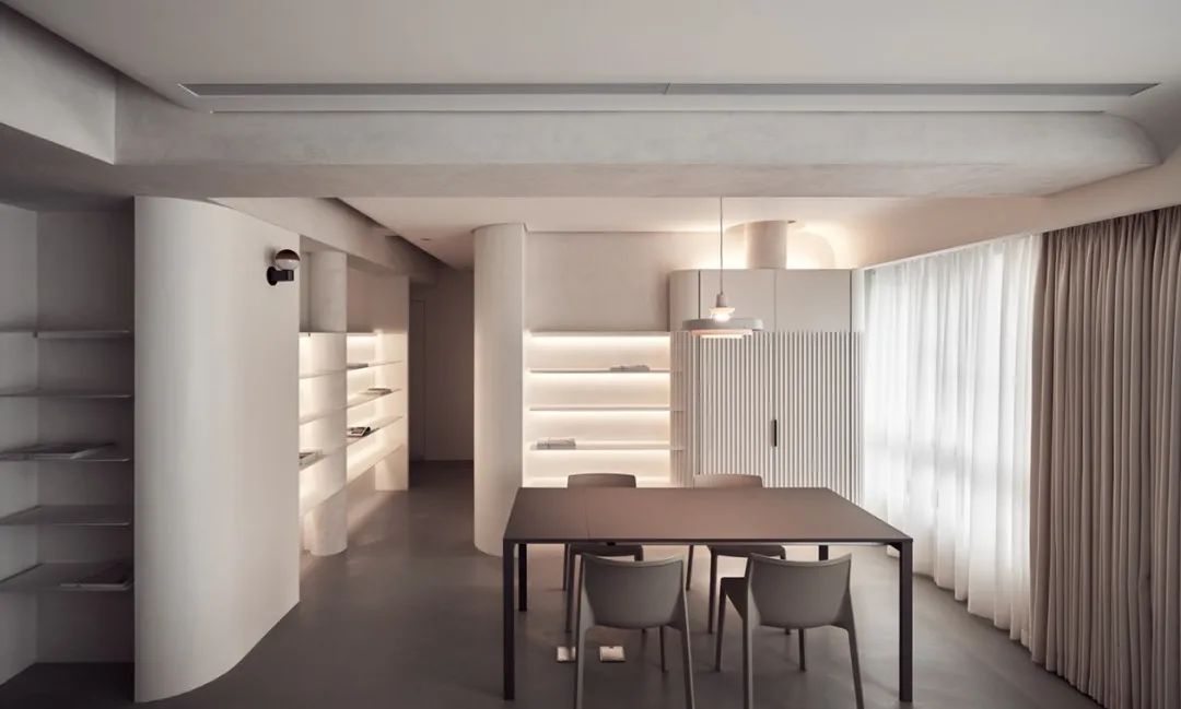 直线最是简单却也最是多变,它有时显得纤细,有时又会显得粗狂,在空间中自由延伸,呈现线条干净利落的硬朗美。自然柔和的曲线则增加了空间整体的流动性,圆弧元素会让人觉得更加舒适、通畅。线条本身就是一种艺术,在空间设计中,恰到好处的线条设计,运用光影、材质、色彩等元素加以修饰,能够给人以赏心悦目的感受,让空间显得更加高级。